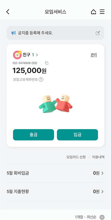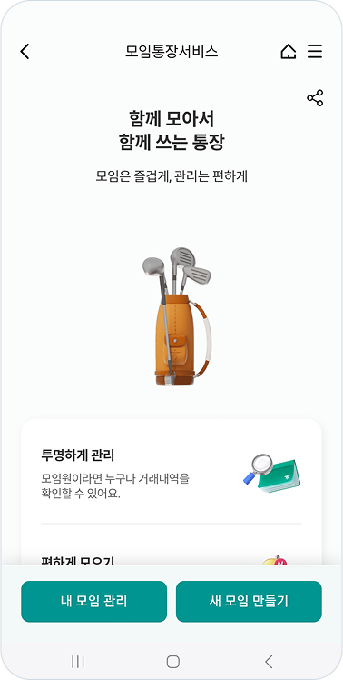 OVERVIEW. 하나원큐 모임통장 서비스 하나원큐 앱 전용 ‘모임통장 서비스’는 모임원 모두가 회비를 직접 보내고 관리할 수 있는 서비스입니다. Full 3D로 제작한 비주얼을 적극 활용하여 시각적인 주목도를 높였으며, 모임 생성, 회비 납부, 회비 내역을 편리하게 이용할 수 있는 최적의 디자인과 UX를 구현하였습니다.