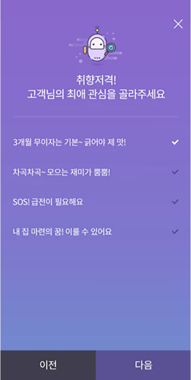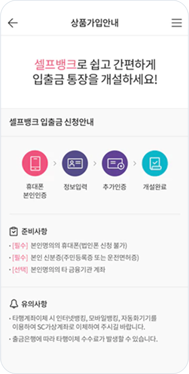 기존 고객들이 점포에 방문해야만 처리가 가능했던 은행 업무(계좌 개설 등)을 비대면에서 모두 처리할 수 있는 셀프뱅킹 앱을 구축하였습니다.