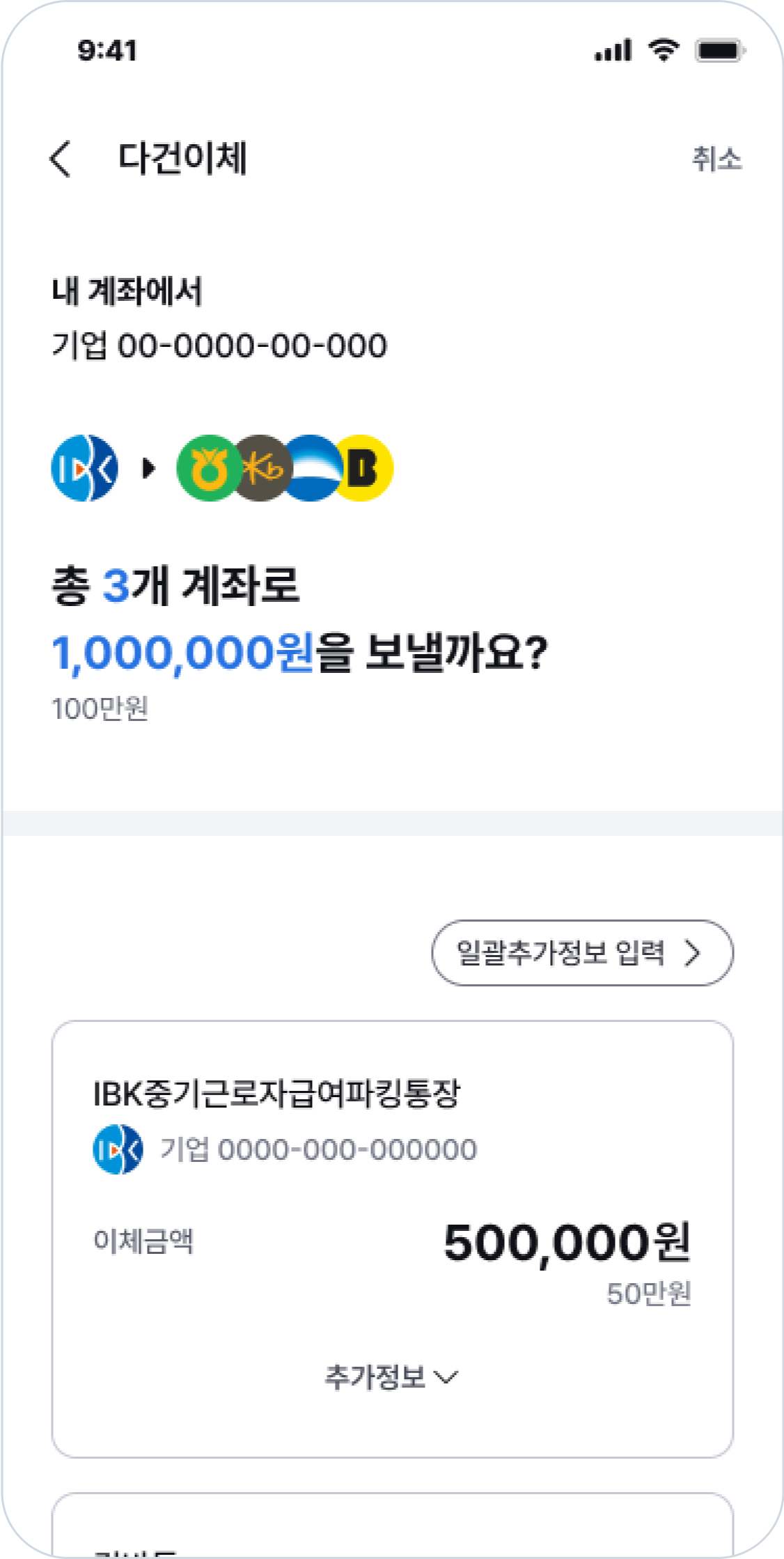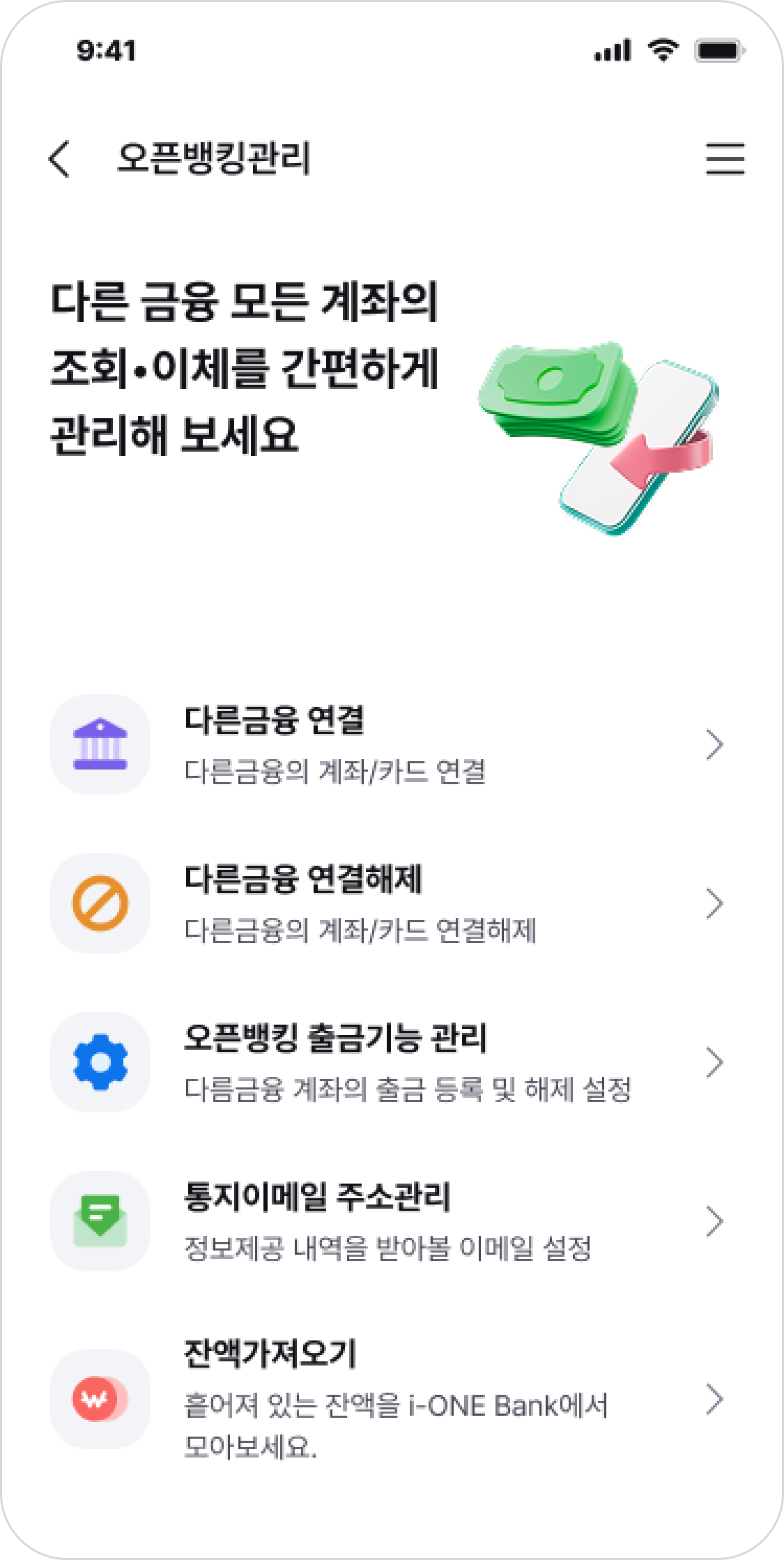 본질적 은행 서비스인 이체 및 오픈 뱅킹 서비스 강화를 통해 사용자에게 새로운 디지털 서비스 경험을 제공합니다.